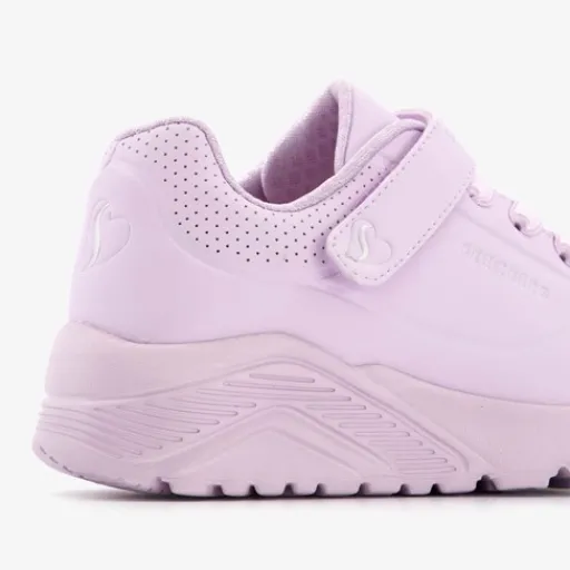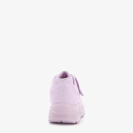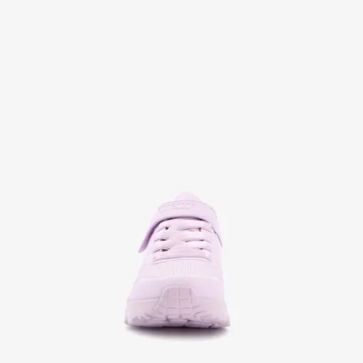Lila/lichtpaarse Skechers Uno Lite sneakers voor kinderen. Het buitenwerk en binnenwerk zijn gemaakt van textiel en de schoen is voorzien van een stevige profielzool. De binnenzool is gemaakt van Memory Foam wat voor extra comfort zorgt. Voorzien van klittenbandsluiting en elastische veters. De stevige buitenzool zorgt voor demping tijdens het lopen. Binnenzool is niet uitneembaar.