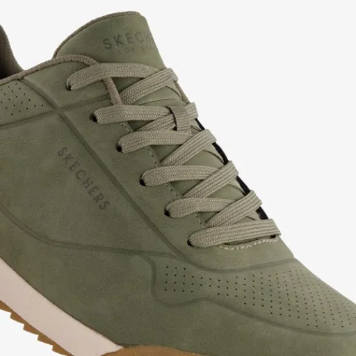 Groene Skechers Zinger 2.0 sneakers voor heren. Het buitenwerk is gemaakt van imitatieleer, het binnenwerk van textiel en de stevige zool met profiel is van rubber. Voorzien van een vetersluiting en een comfortabele binnenzool van Air-Cooled Memory Foam. Deze biedt demping bij elke stap die je neemt. Binnenzool is niet uitneembaar.