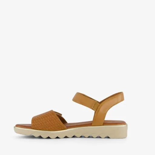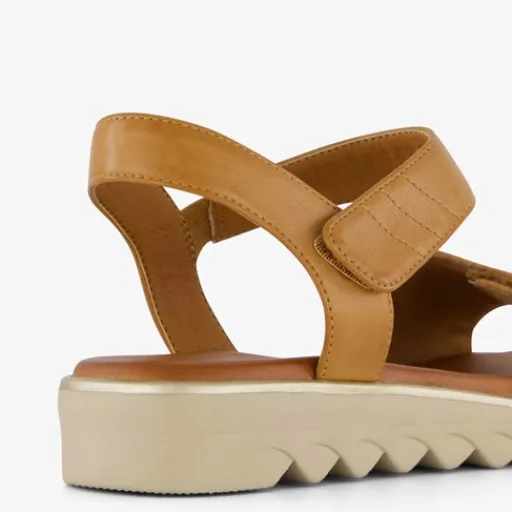 Cognac kleurige sandalen van Softline voor dames. Gemaakt van imitatieleer met een stevige profielzool van rubber. De sandalen hebben een brede band bij de tenen met klittenbandsluiting en een band met klittenband bij de enkel. Het comfortabele voetbed van imitatieleer is niet uitneembaar.