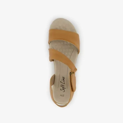 Cognac kleurige sandalen voor dames van Softline. Gemaakt van imitatieleer met een binnenwerk van textiel en een stevige profielzool van rubber. De sandalen hebben een band bij de tenen en een band met klittenbandsluiting bij de enkel. Het comfortabele voetbed van textiel is niet uitneembaar.