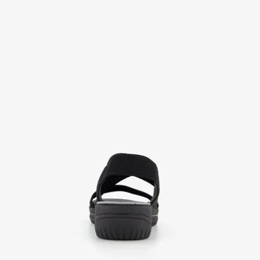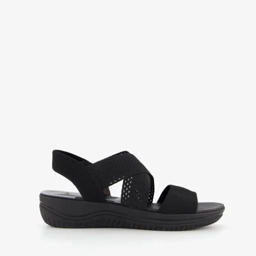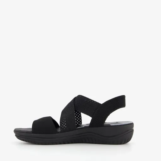 Zwarte sandalen voor dames van Softline. Gemaakt van textiel, een binnenwerk van textiel en een stevige profielzool. De sandalen hebben elastische bandjes voor een makkelijke instap en meerdere bandjes over de voet/tenen voor een optimale pasvorm. Het vaste voetbed is gemaakt van imitatieleer en biedt veel comfort. De sandalen hebben een extra brede leest en rubberen buitenzool voor grip en demping.