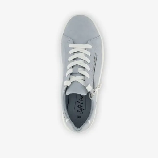 Pastelblauwe sneakers voor dames uit de Softline collectie. Gemaakt van imitatieleer, een binnenwerk van textiel en een rubberen zool. De sneakers hebben een rits- en vetersluiting voor een makkelijke instap. Het vaste voetbed is gemaakt van imitatieleer. De sneakers beschikken over een wijde pasvorm en zijn hierdoor geschikt voor brede(re) voeten.