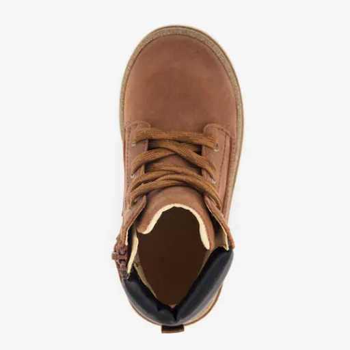 Bruine veterboots voor jongens van Stap. Het buiten- en binnenwerk zijn van leer gemaakt en de stevige buitenzool met profiel is van rubber. Voorzien van een vetersluiting en een ritssluiting met een klittenbandje voor een optimale pasvorm. De boots hebben een comfortabele, vaste binnenzool van leer. Deze schoenen met het Stap-keurmerk voldoen aan de volgende kwaliteitseisen: ademend leer, een buigzame zool voor een goede voetafwikkeling, een leren voetbed, een perfecte pasvorm en een verstevigde hiel voor stabiliteit en een gezonde loophouding. De schoenen zijn goedgekeurd door orthopedisch chirurg Dr. Visser.
