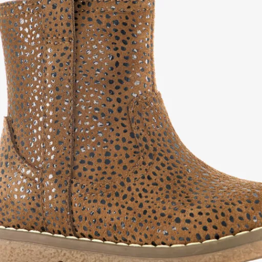 Bruine boots met een zwarte stippenprint voor meisjes van Stap. Het buiten- en binnenwerk zijn van leer gemaakt en de stevige buitenzool met profiel is van rubber. De comfortabele binnenzool van leer is niet uitneembaar. De boots zijn voorzien van een ritssluiting aan de binnenzijde en een aantreklusje aan de buitenzijde. Deze schoenen met het Stap-keurmerk voldoen aan de volgende kwaliteitseisen: ademend leer, een buigzame zool voor een goede voetafwikkeling, een leren voetbed, een perfecte pasvorm en een verstevigde hiel voor stabiliteit en een gezonde loophouding. De schoenen zijn goedgekeurd door orthopedisch chirurg Dr. Visser.