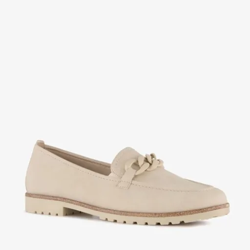 Beige loafers voor dames van Tamaris. Gemaakt van imitatieleer, een binnenwerk van textiel en een rubberen zool. De loafers hebben een elastische instap en comfortabel soft foam voetbed. Deze is niet uitneembaar. Voorzien van decoratie op de neus.