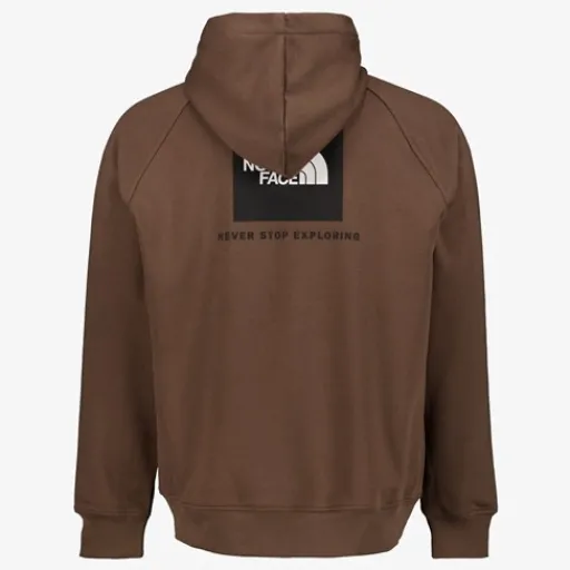 Bruine The North Face Redbox hoodie voor heren. Voorzien van een capuchon met aantrekkoorden en een buidelzak aan de voorzijde. De hoodie heeft een backprint en een merkopdruk op de borst. Gemaakt van 80% katoen en 20% polyester.