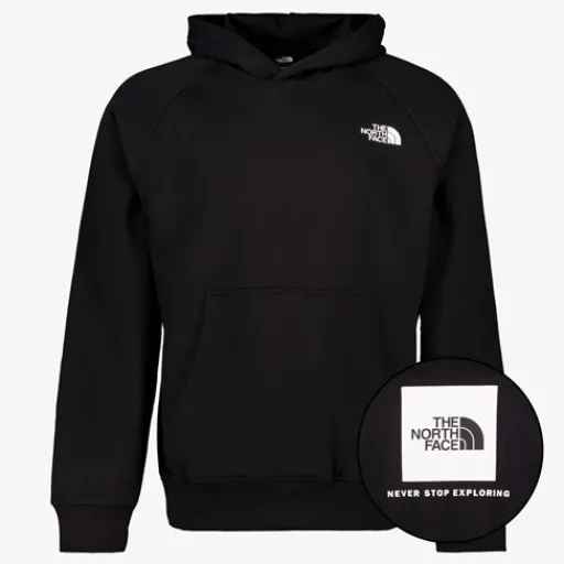 Zwarte The North Face Redbox hoodie voor heren. Voorzien van een capuchon met aantrekkoorden en een buidelzak aan de voorzijde. De hoodie heeft een backprint en een merkopdruk op de borst. Gemaakt van 80% katoen en 20% polyester.