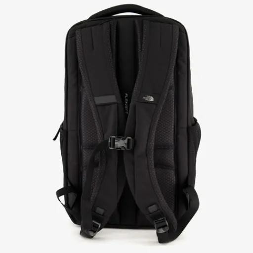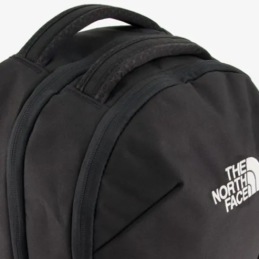 Zwarte The North Face Vault rugzak. Voorzien van twee stevige draaglussen aan de bovenkant, een FlexVentâ„¢-draagsysteem met flexibel voorgevormde schouderbanden, een gewatteerde rugsectie en een ademende onderrugpaneel. De rugzak heeft een ruime hoofdvak met hierin een vak voor je laptop, boeken en al je andere spullen. Daarnaast heeft de tas een borstriem, een voorvak met gewatteerde tablethoes en twee meshvakken aan de zijkanten. Door de strategisch geplaatste reflectoren ben je goed zichtbaar in het donker. Afmetingen: 45 x 45 x 21 cm. Inhoudt is 26 liter. Gemaakt van polyester.