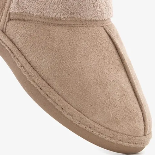 Beige, gevoerde pantoffels voor dames van Thu!s. Gemaakt van textiel, een binnenwerk van textiel en een stevige profielzool. De pantoffels hebben een zachte, warme voering en een comfortabel voetbed