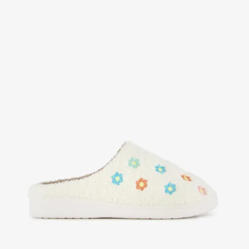 Thu!s Dames teddy pantoffels met bloemen beige Clearance