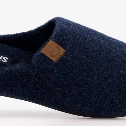 Blauwe instap pantoffels voor heren van Thu!s. Gemaakt van textiel, een binnenwerk van textiel en een stevige zool. De pantoffels hebben een comfortabel, zacht voetbed.