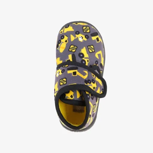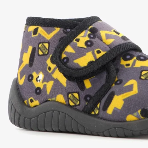 Stoere pantoffels met print voor jongens. Gemaakt van textiel, een binnenwerk van textiel en een stevige profielzool. De pantoffels hebben een klittenbandsluiting voor een makkelijke instap. De vaste binnenzool is gemaakt van textiel. Voorzien van print met graafmachines op het bovenwerk. De pantoffels hebben een harde zool voor een goede grip.