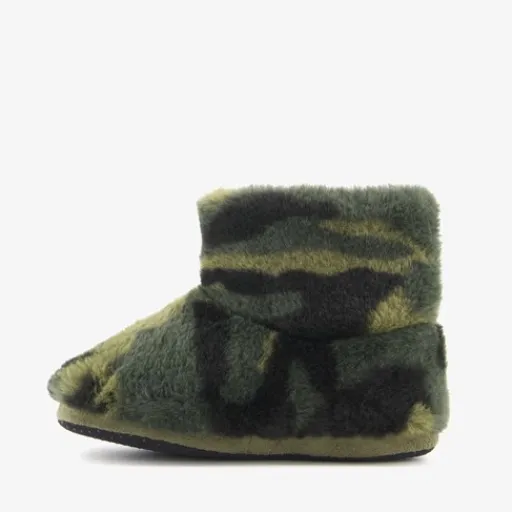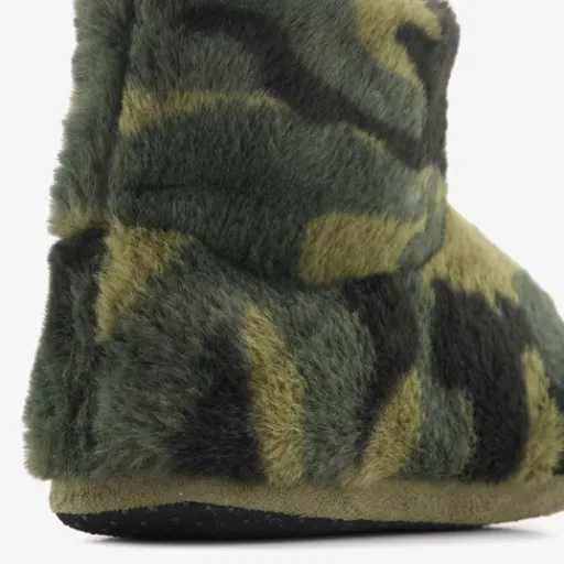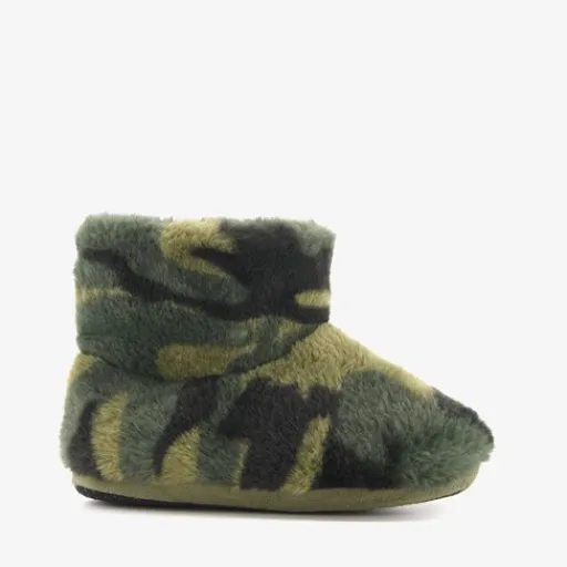 Hoge, groene sloffen met camouflage print voor jongens van Thu!s. Gemaakt van textiel met een zachte en warme voering van textiel en een antislipzool. LET OP: op het artikelkaartje staat een enkele maat aangegeven. Echter hebben deze pantoffels een dubbele maat. Dit staat in de zool van de pantoffels.