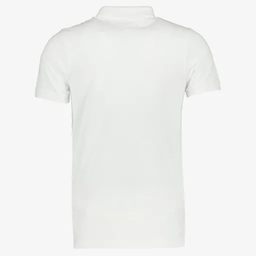 Witte Tommy Hilfiger polo voor heren. Deze klassieke polo heeft een hoge hals met omgeslagen kraagje, 2 knopen op de borst en korte mouwen. Voorzien van het Tommy Hilfiger merklogo en gemaakt van 100% katoen.