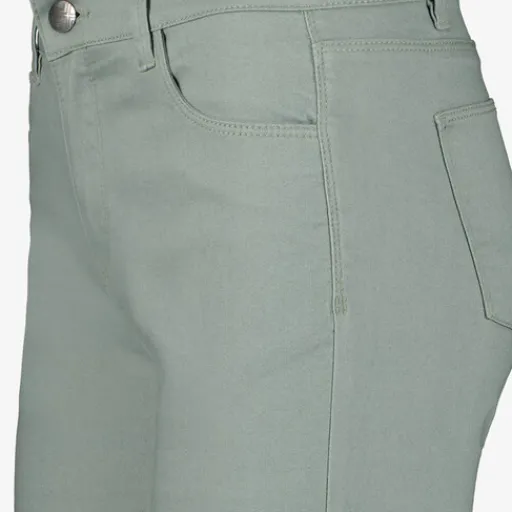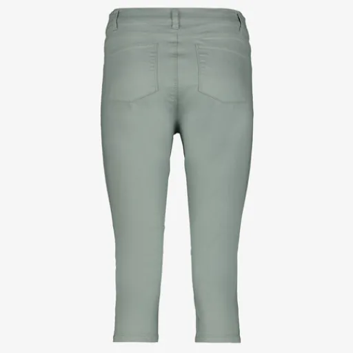 Lichtgroene capri broek voor dames. Voorzien van een knoop- en ritssluiting, riemlusjes en twee voor- en achterzakken. De capri broek is gemaakt van 70% katoen, 28% polyester en 2% elastaan.