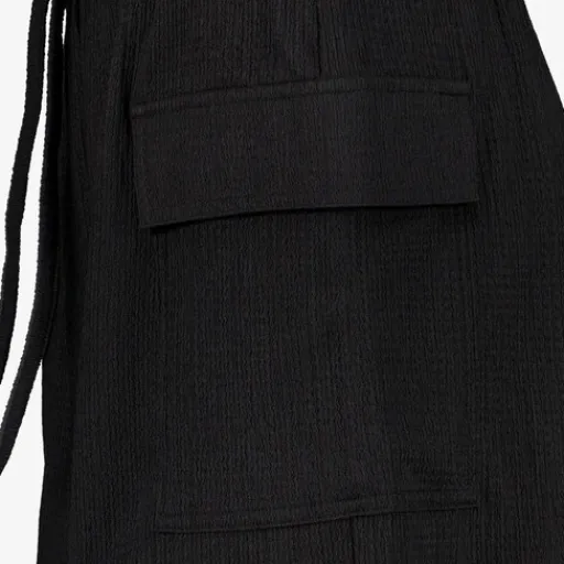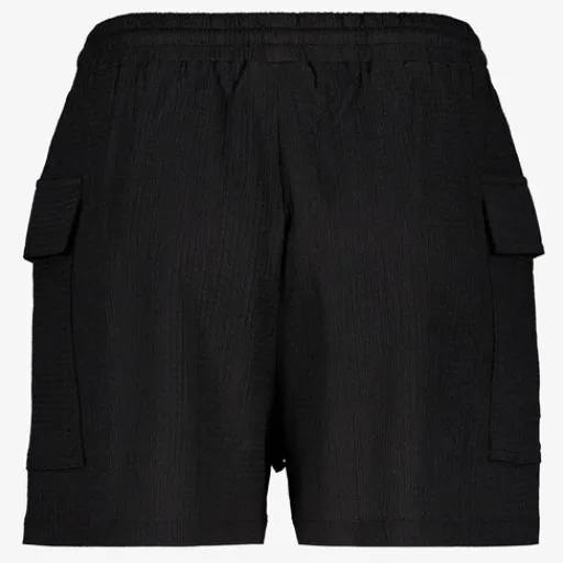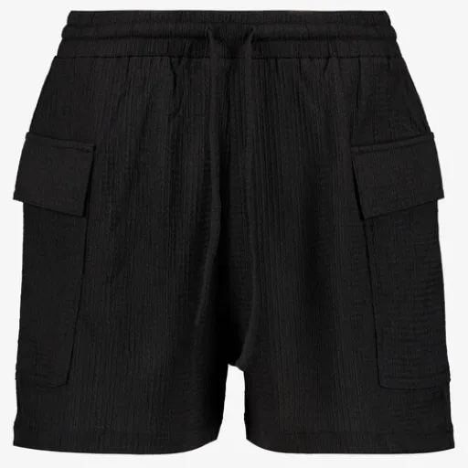 Zwarte, luchtige short voor dames van TwoDay. De cargo short heeft een elastische tailleband met aantrekkoordjes en klepzakken. Gemaakt van 98% polyester en 2% elastaan.