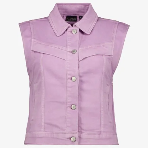 Lila denim gilet voor dames van TwoDay. Voorzien van een omgeslagen kraagje, knoopsluiting en twee steekzakken aan de voorzijde. Het spijkergilet is gemaakt van 98% katoen en 2% elastaan.ΒΆΒΆ