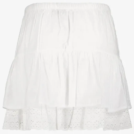 Witte rok voor dames van TwoDay. Voorzien van een elastische tailleband en ruches aan de onderzijde met broderie. Gemaakt van 100% katoen. Combineer de rok met de bijpassende top en maak je outfit compleet!