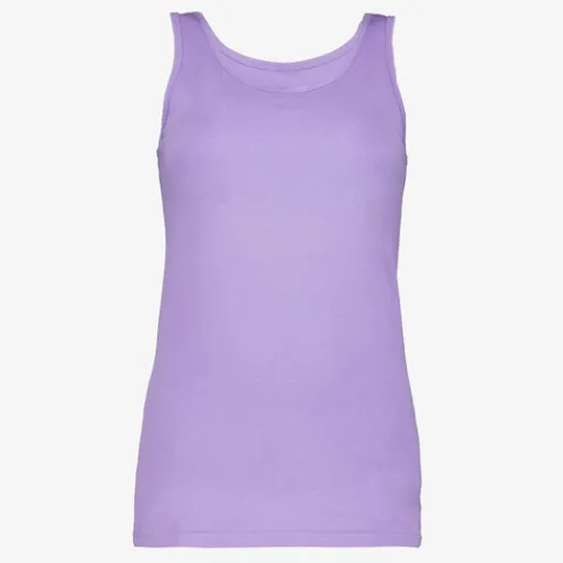 Paarse basic singlet voor dames van TwoDay. De mouwloze singlet heeft een ronde hals en aansluitende pasvorm. Gemaakt van 95% katoen en 5% elastaan.