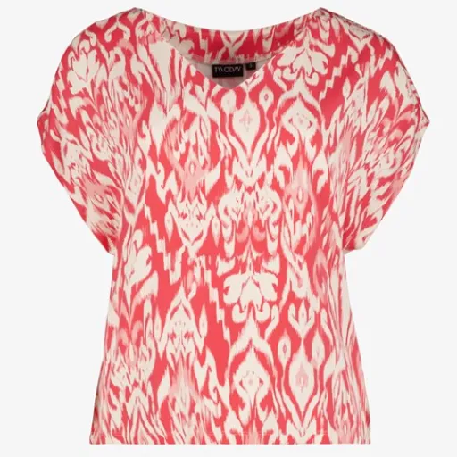 Dames T-shirt van TwoDay. Voorzien van korte, wijde mouwen en een V-hals. Het shirt heeft een all over print en is gemaakt van 100% viscose.