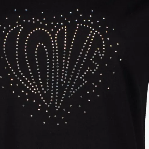 Zwart T-shirt met strass-steentjes voor dames uit de TwoDay collectie. Voorzien van een ronde hals en korte mouwen. Op het shirt is het woord love geschreven met schitterende strass steentjes. Gemaakt van 100% katoen.
