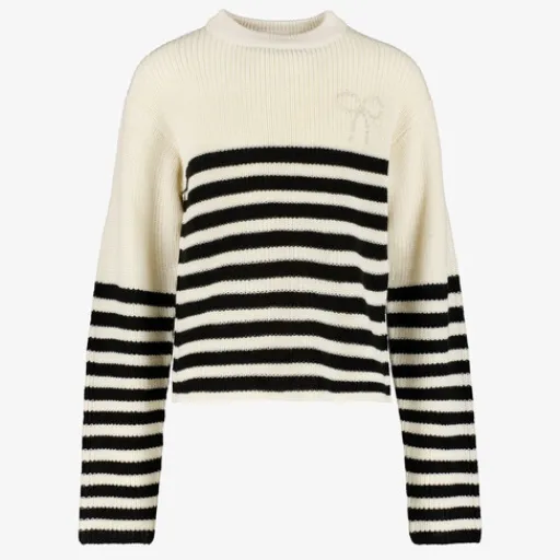 TwoDay Gebreide meisjes trui met strepen en strikje wit zwart Best