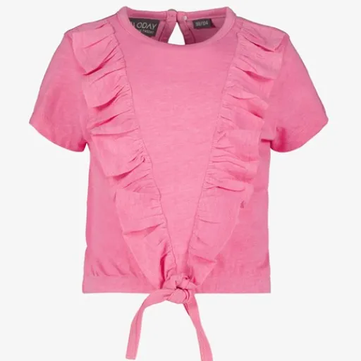 TwoDay Geknoopt meisjes T-shirt met ruches roze Clearance