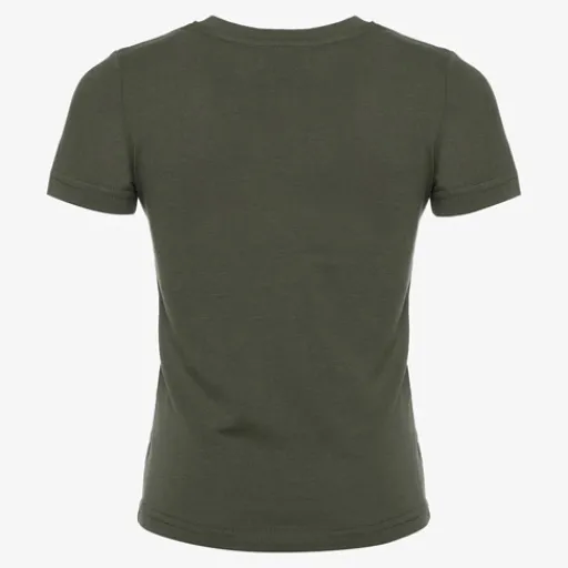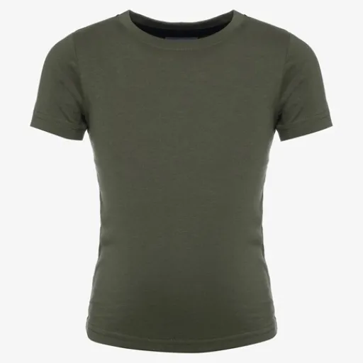 Groen basic T-shirt voor jongens. Voorzien van korte mouwen en een hoge, ronde hals. Het T-shirt is gemaakt van 100% katoen.