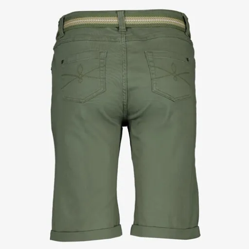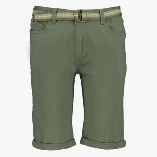 Groene short voor dames van TwoDay. Voorzien van een matchende riem, steekzakken en omgeslagen boorden aan de onderzijde van de broekspijp. De korte broek is gemaakt van 98% katoen en 2% elastaan.