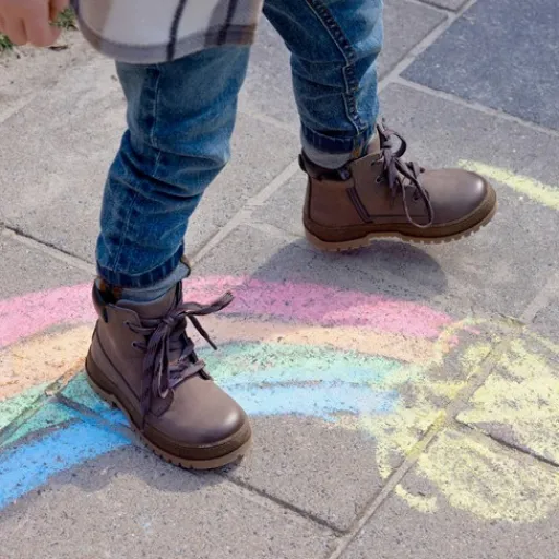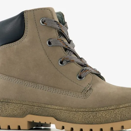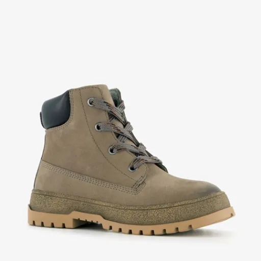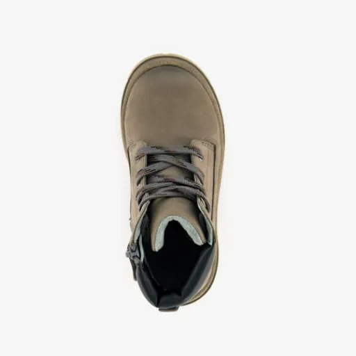 Taupe/grijze veterboots voor jongens van TwoDay. Gemaakt van nubuckleer, een binnenwerk van leer en een rubberen zool. De stoere boots hebben een vetersluiting en rits met klittenbandje aan de binnenzijde zodat ze goed dicht blijven zitten. Het vaste voetbed is gemaakt van leer. De veterboots hebben het Dr. Visser keurmerk, wat de volgende garanties biedt: goede pasvorm, verstevigde hiel, bovenmateriaal van leer en een buigzame zool.