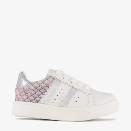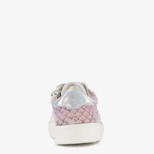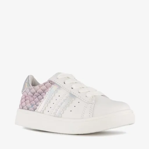 Witte sneakers met roze details voor meisjes uit de TwoDay collectie. Het buiten- ne binnenwerk zijn gemaakt van leer en de stevige zool met profiel is van rubber. Voorzien van een rits- en vetersluiting voor een optimale pasvorm en een comfortabele voetbed van leer. Het buitenwerk va de schoenen worden versierd met kanten details en zilverkleurige accenten. Binnenzool is niet uitneembaar. De sneakers zijn gekeurd door Dr. Visser, wat de volgende garanties biedt: goede pasvorm, verstevigde hiel, bovenmateriaal van leer en een buigzame zool.