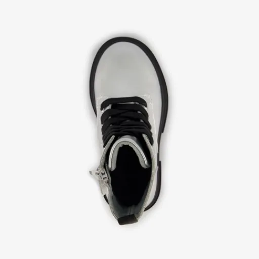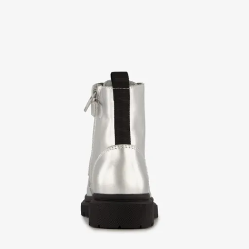 Zilverkleurige veterboots voor meisjes van TwoDay. Het buiten- en binnenwerk zijn gemaakt van leer en de stevige zool met profiel van rubber. Voorzien van een veter- en ritssluiting met klittenbandje voor een optimale pasvorm en aantreklusjes aan de achterzijde voor een makkelijke instap. De comfortabele binnenzool van leer is niet uitneembaar. Schachthoogte is 10 cm. De veterboots hebben het Dr. Visser keurmerk wat de volgende garanties biedt: goede pasvorm, verstevigde hiel, bovenmateriaal van leer en een buigzame zool.