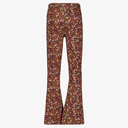 Meisjes flared broek. Voorzien van een elastische tailleband, aansluitende pasvorm en wijde broekspijpen. De flared broek heeft all over bloemenprint en is gemaakt van 57% viscose, 29% polyester en 14% elastaan