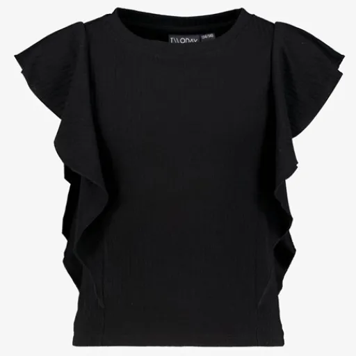 TwoDay Meisjes rib T-shirt met ruches zwart Clearance