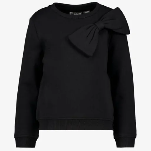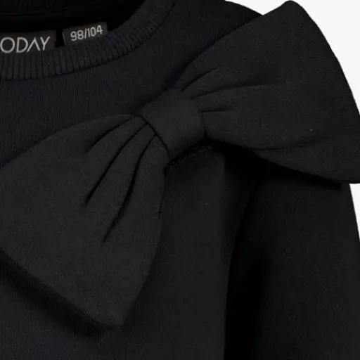 Zwarte sweater voor meiden. Voorzien van lange mouwen, een ronde hals en elastische boorden. De sweater heeft een grote strik op de schouder en is gemaakt van 65% katoen en 35% polyester.ΒΆ