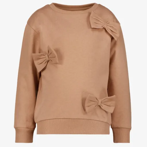 Bruine sweater met strikjes voor meisjes van TwoDay. Voorzien van een ronde hals en lange mouwen met elastische boorden. Gemaakt van 100% katoen.