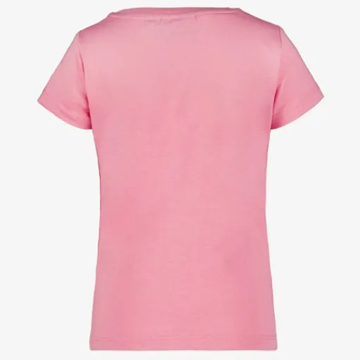 Roze meisjes T-shirt van TwoDay. Het shirtje heeft een opdruk van een kat met strikje aan de voorzijde en is gemaakt van 100% katoen.