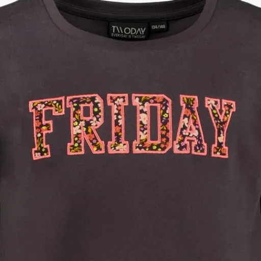 TwoDay Meisjes T-shirt met tekstopdruk zwart New