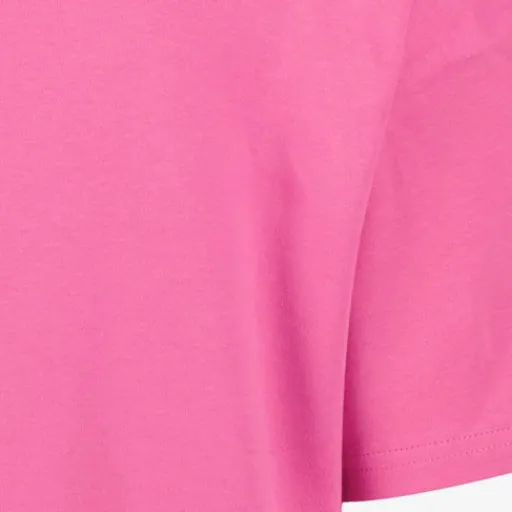 Roze dames T-shirt met oversized pasvorm. Het shirt heeft halflange mouwen, een ronde hals en is gemaakt van 100% katoen.