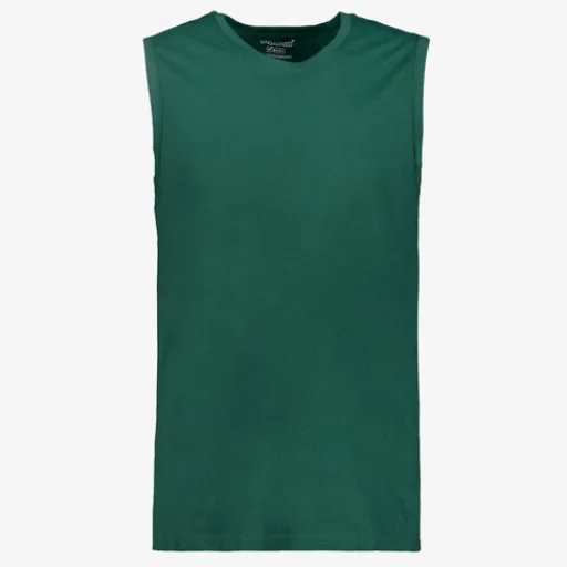 Groen singlet voor heren. Dit mouwloze singlet heeft een ronde hals en is gemaakt van 100% katoen. Nu 2 voor €10.