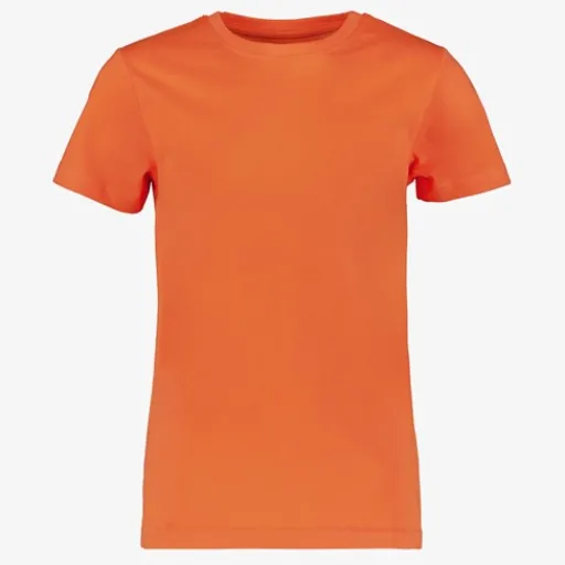 Oranje basic T-shirt voor jongens. Voorzien van korte mouwen en een ronde hals. Het shirt is gemaakt van 100% katoen.