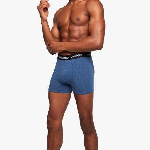Twee blauwe boxershorts voor heren van Unsigned. Voorzien van een elastische boord met merkopdrukken. De boxershorts hebben een dubbel gelaagd kruis voor extra ondersteuning. Gemaakt 95% katoen en 5% elastaan. Let op: dit product mag niet geretourneerd worden i.v.m. hygiƫne.