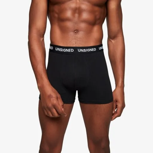 Twee zwarte boxershorts voor heren van Unsigned. Voorzien van een elastische boord met merkopdrukken. De boxershorts hebben een dubbel gelaagd kruis voor extra ondersteuning. Gemaakt 95% katoen en 5% elastaan. Let op: dit product mag niet geretourneerd worden i.v.m. hygiƫne.