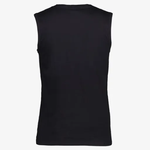 Zwart singlet voor heren uit de Unsigned collectie. Voorzien van een hoge, ronde hals. Het mouwlozen singlet heeft een comfortabele pasvorm en is gemaakt van 100% biologisch katoen.