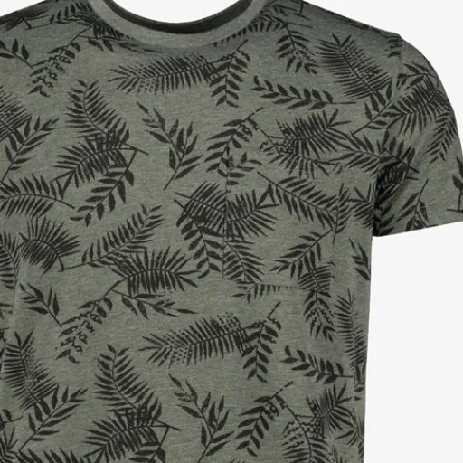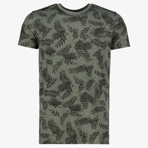 Groen T-shirt voor heren. Voorzien van korte mouwen, een ronde hals en all over print. Het shirt is gemaakt van 65% poyester en 35% katoen.