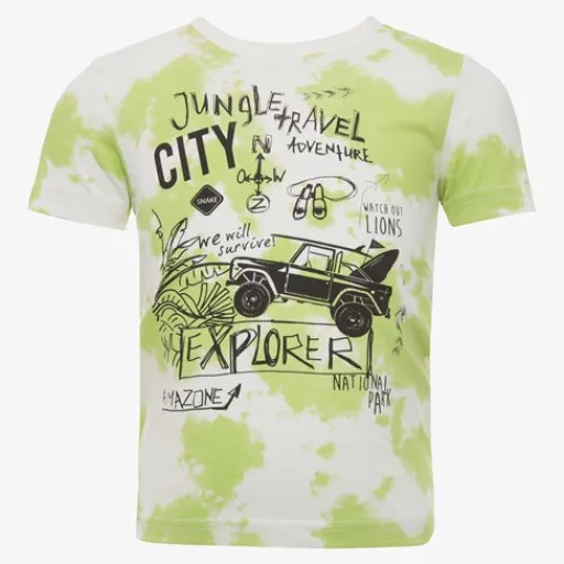 Unsigned Jongen tie dye T-shirt wit groen Clearance