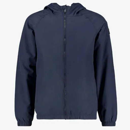Donkerblauw bomberjack voor jongens. Voorzien van een ritssluiting, capuchon en twee zakken. De zomerjas heeft elastische boorden en is gemaakt van 100% nylon.