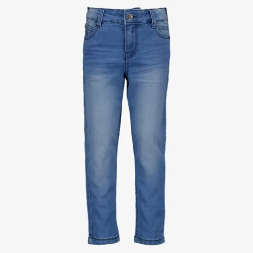Medium blauwe jeans voor jongens van Unsigned. Voorzien van een knoop- en ritssluiting en riemlusjes in de boord. De jeans heeft een slim fit pasvorm, gebleekte wassing, twee voorzakken en twee achterzakken. Dit artikel is gemaakt met 72% biologisch katoen, 26% polyester en 2% elastaan.