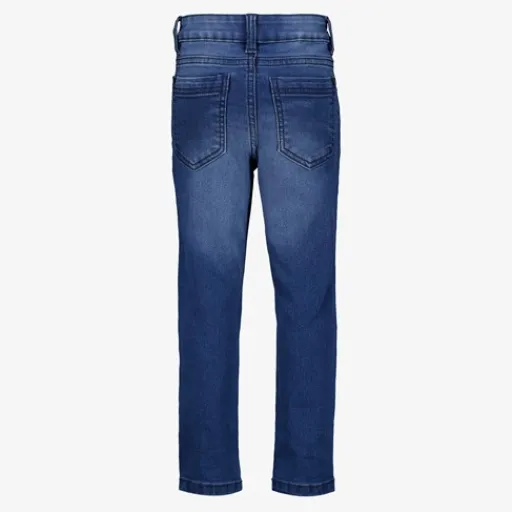 Donkerblauwe jeans voor jongens van Unsigned. Voorzien van een knoop- en ritssluiting en riemlusjes in de boord. De jeans heeft een slim fit pasvorm, gebleekte wassing, twee voorzakken en twee achterzakken. Dit artikel is gemaakt met 72% biologisch katoen, 26% polyester en 2% elastaan.
