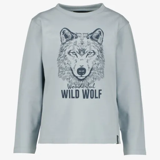 Unsigned Jongens shirt met lange mouwen en wolvenkop blauw